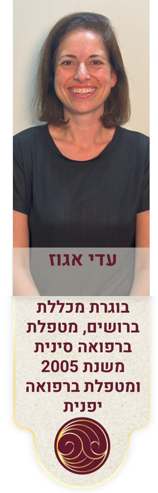 עימה מטפלות 5 מטפלות ותיקות, מנוסות ומיומנות המשלבות טיפולים ברפואה סינית ויפנית עם טיפולים ברפואה אסתטית וטיפולי אונטסו היפרתרמיה בכל מגוון קשת הפתולוגיות, המחלות, הכאבים ושיפור איכות החיים, טיפולי שיאצו, טווינה, רפלקסולוגיה ועוד.